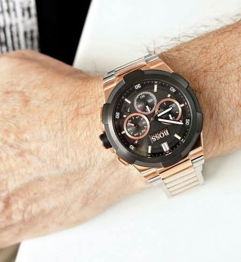 Hugo Boss Supernova Chronograph Silver Rose Gold Black Authentic Store Quality